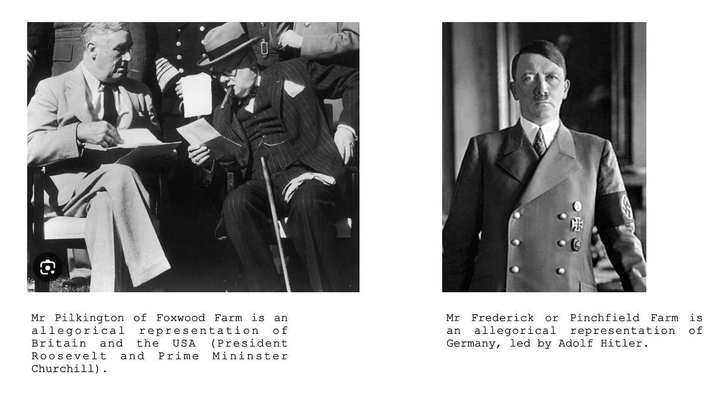 Napoleon’s double dealings with his neighbours, Mr. Pilkington and Mr. Frederick, reflects Stalin’s double dealings with Germany and the Allies (Britain and the USA) at the outset of World War II.
